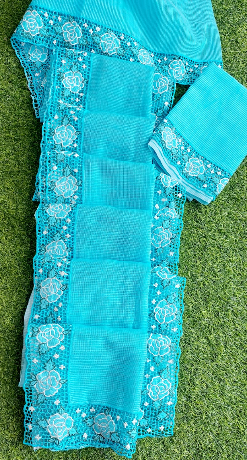 "Experience effortless elegance with our Blue Noil Kota Cutwork Saree
