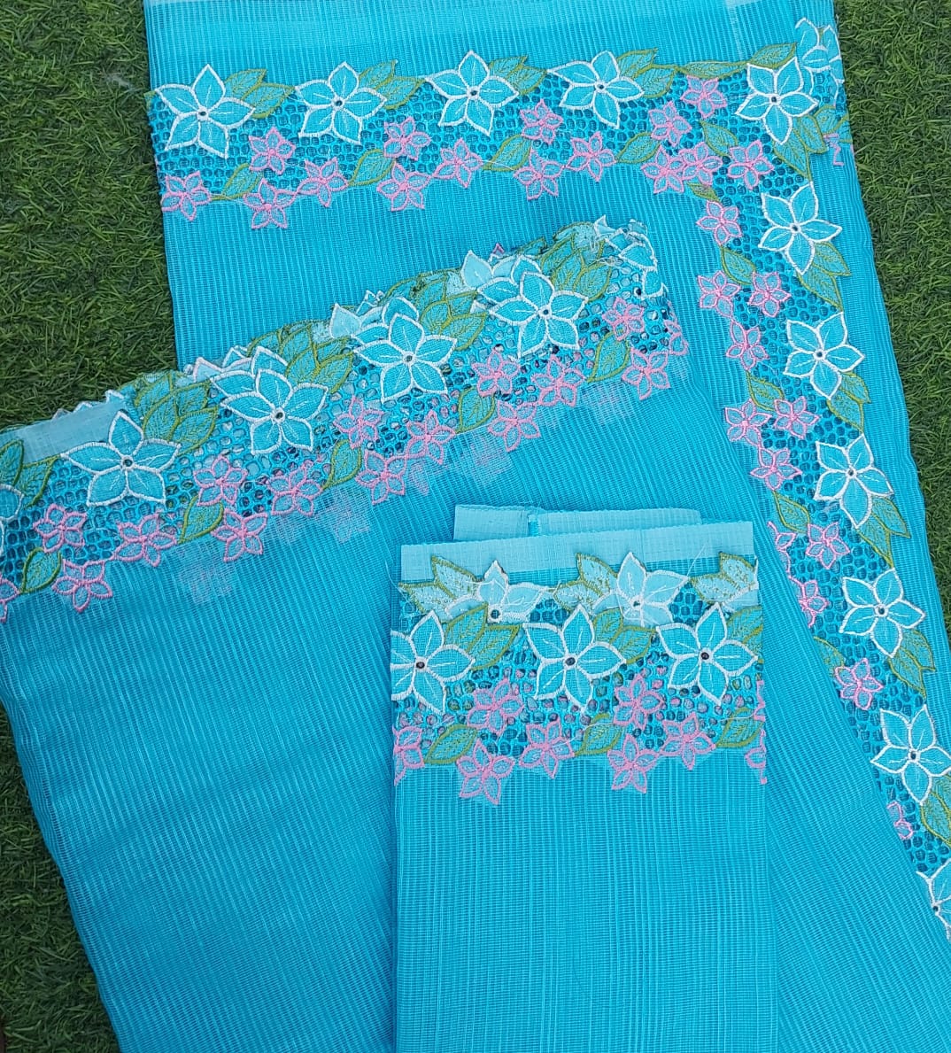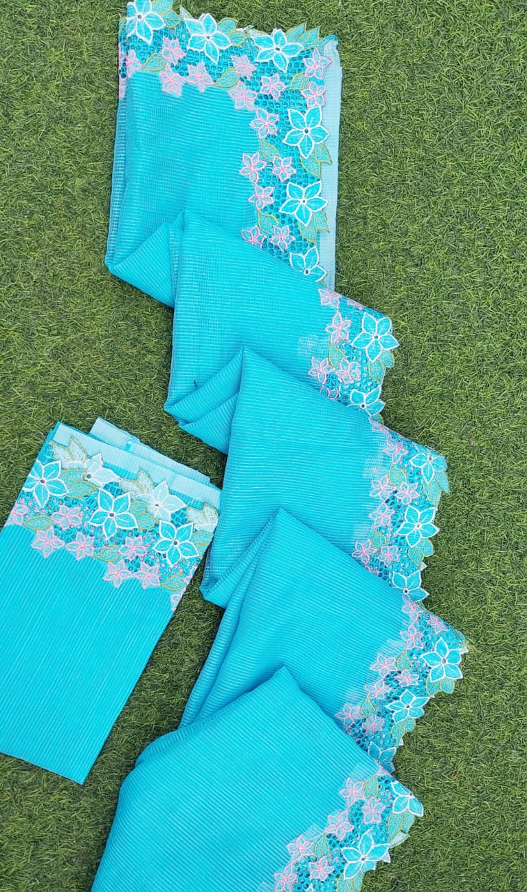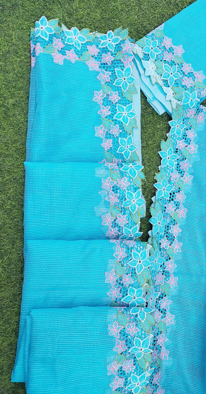 "Experience effortless elegance with our Blue Noil Kota Cutwork Saree