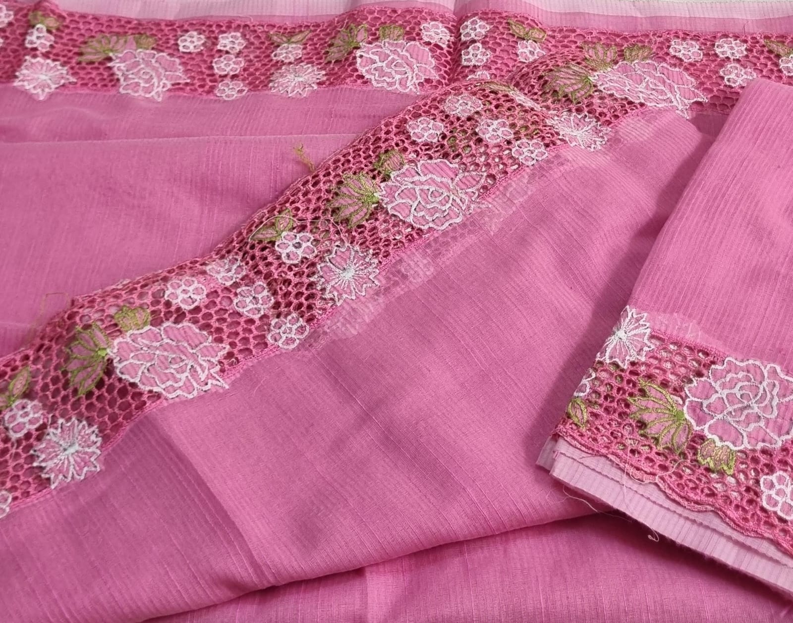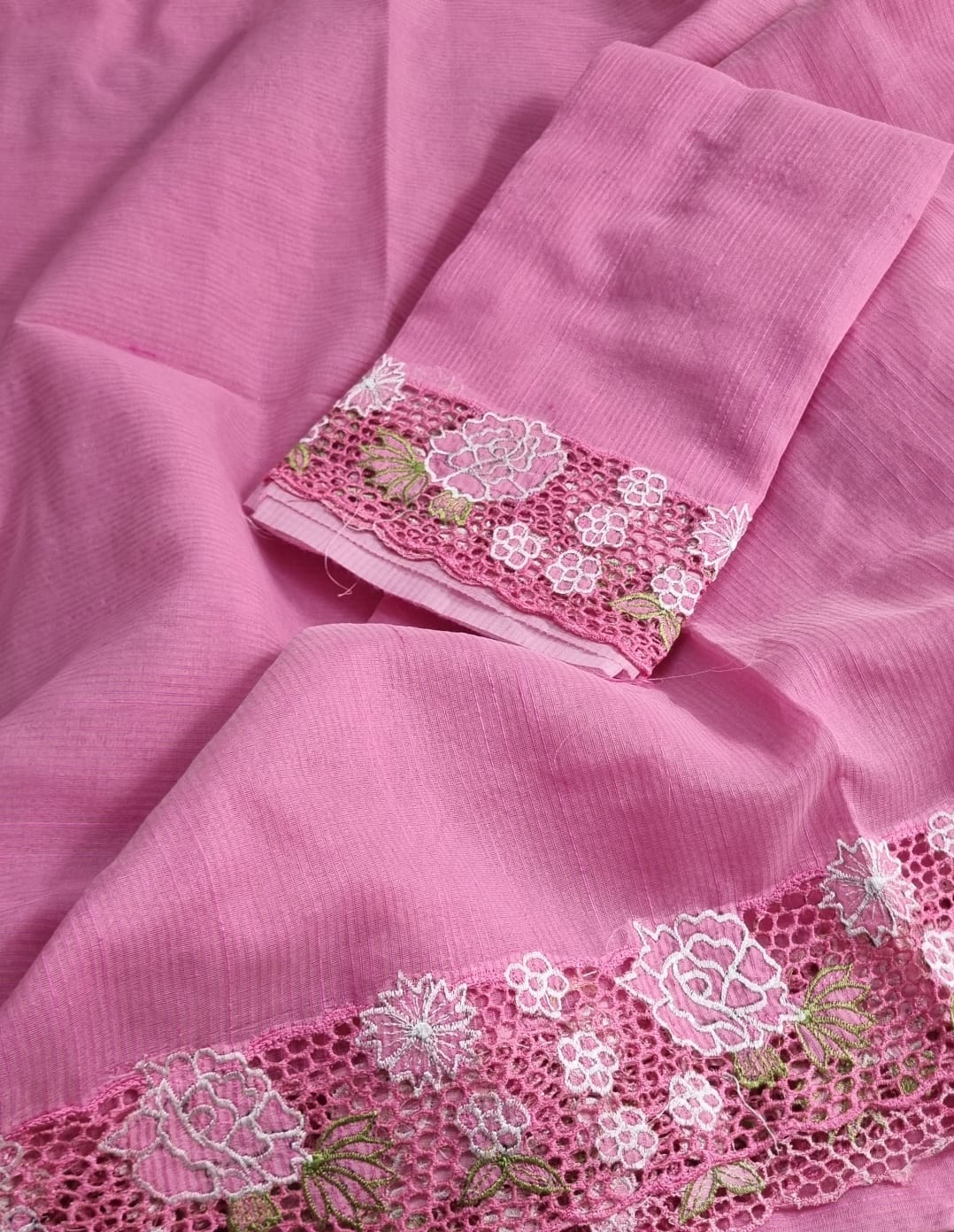 "Elegant Pink Silky Kota Cutwork Saree with Matching Blouse"