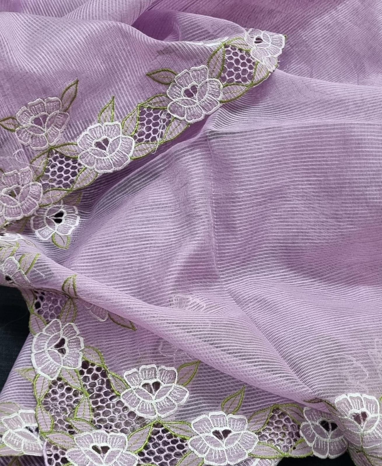 Lavender Kota cutwork saree and blouse