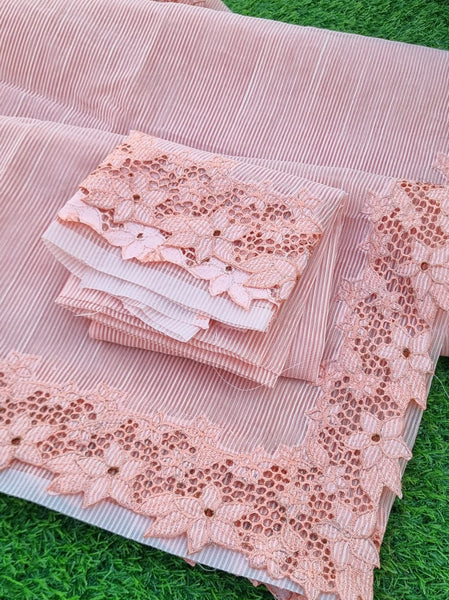 "Elegant Pink Silky Kota Cutwork Saree with Matching Blouse"