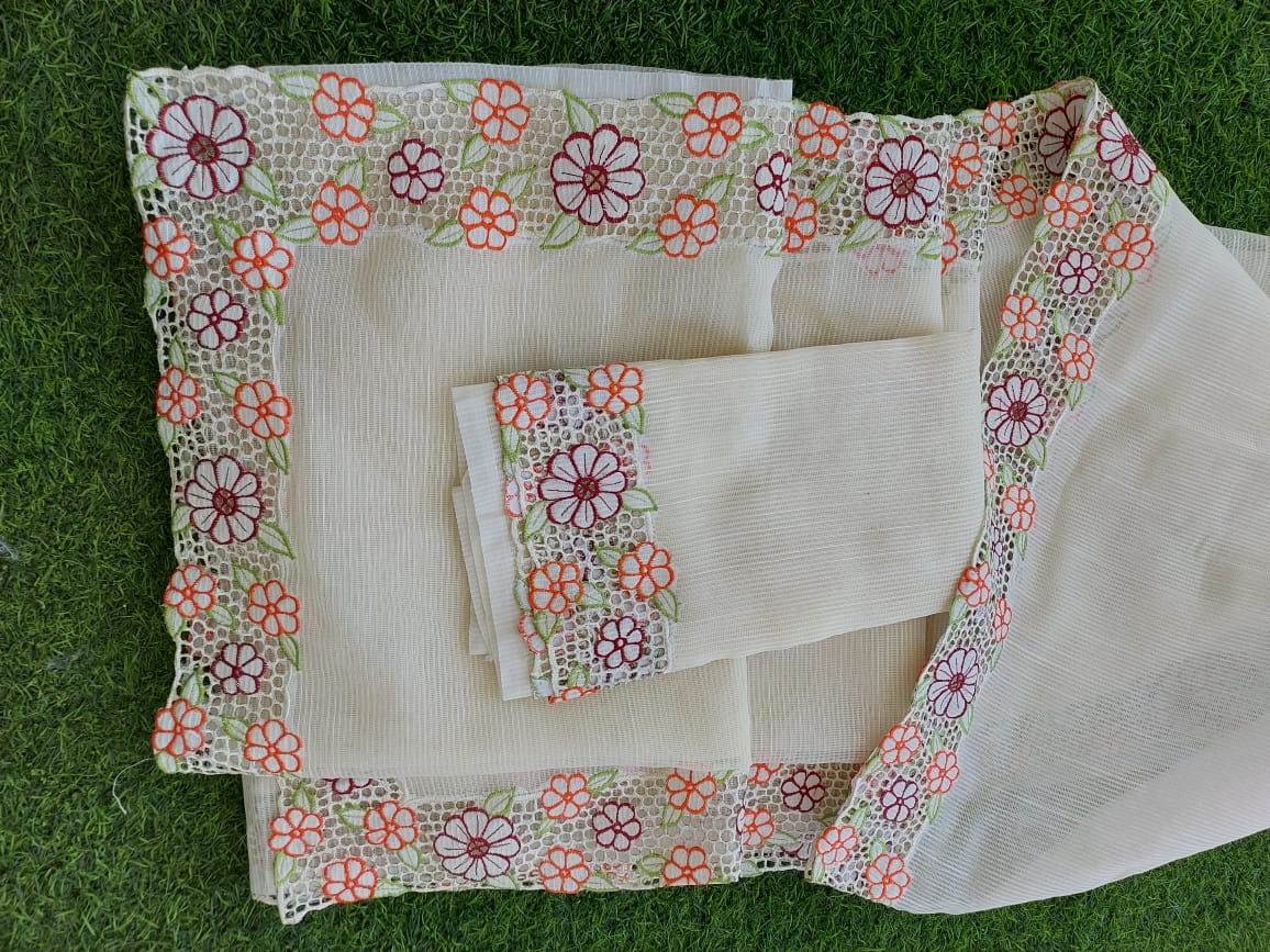 "Elegant Pink Silky Kota Cutwork Saree with Matching Blouse"