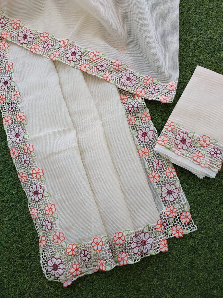 "Experience effortless elegance with our Blue Noil Kota Cutwork Saree
