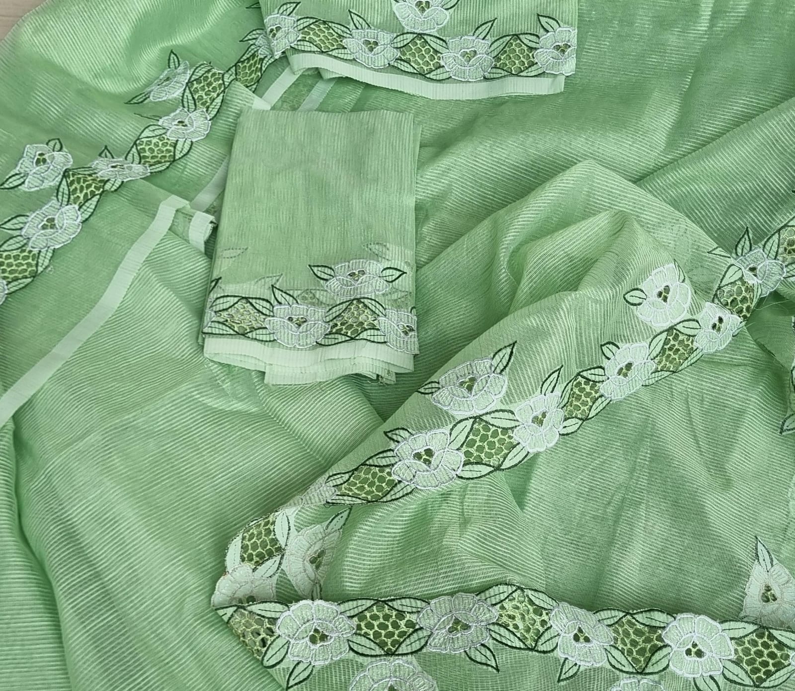 "Graceful Pista Green Noil Kota Cutwork Saree with Matching Blouse"