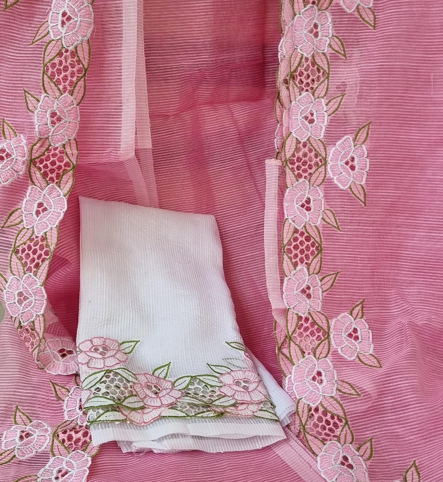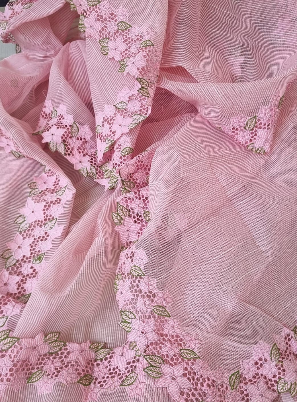 "Elegant Pink Silky Kota Cutwork Saree with Matching Blouse"
