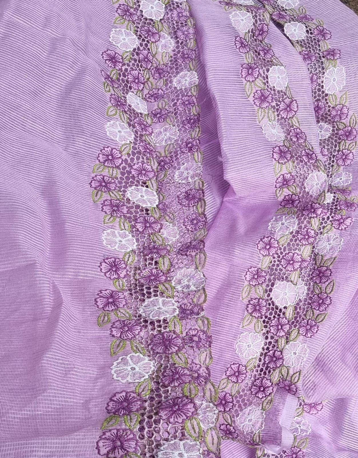 "Soft Lavender Noil Kota Cutwork Saree with Matching Blouse – Elegance Redefined"