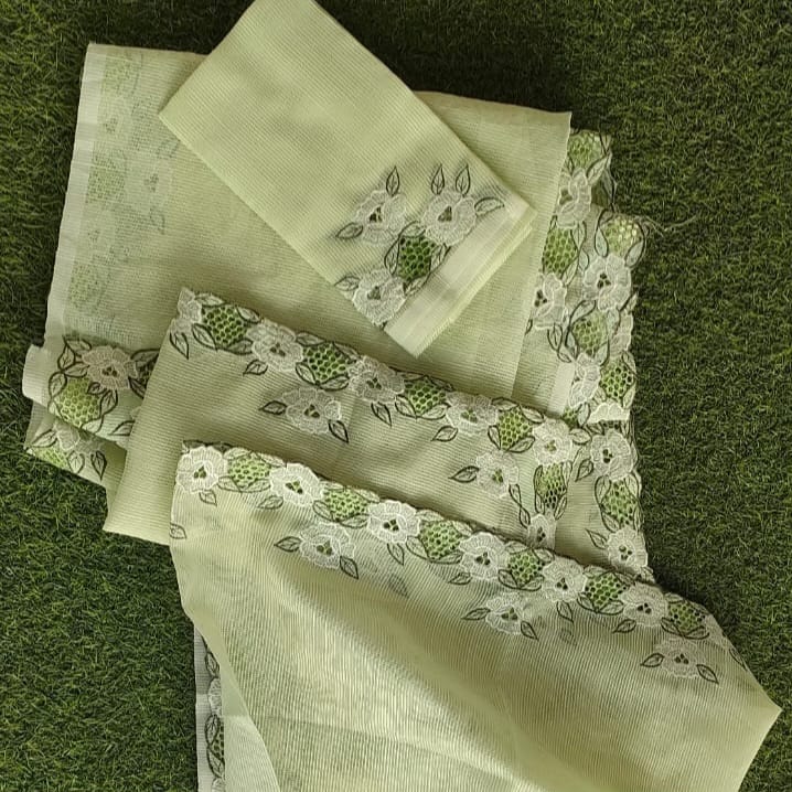 Noil kota pista green pastel shade saree and blouse with cutwork