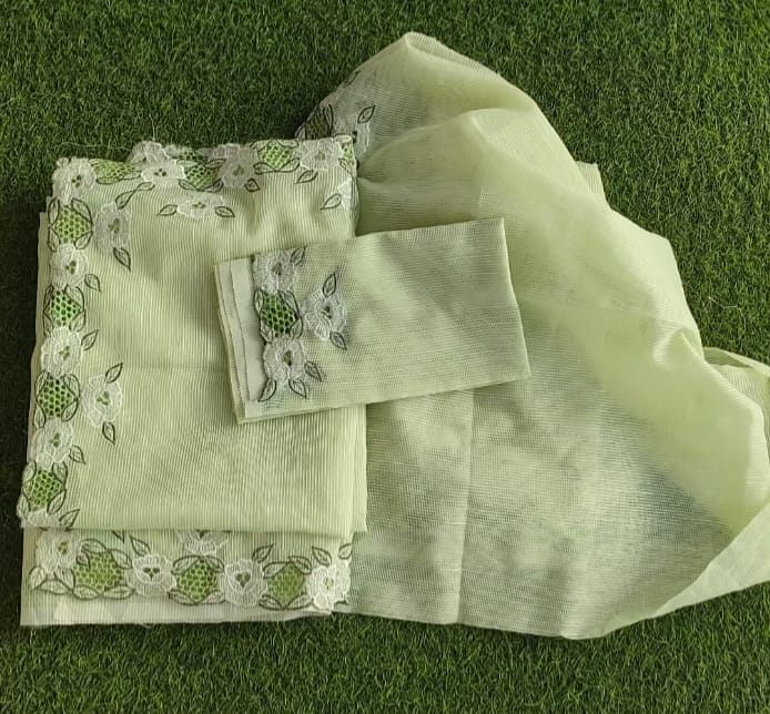 "Graceful Pista Green Noil Kota Cutwork Saree with Matching Blouse"
