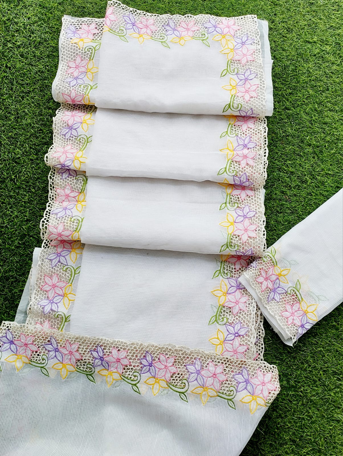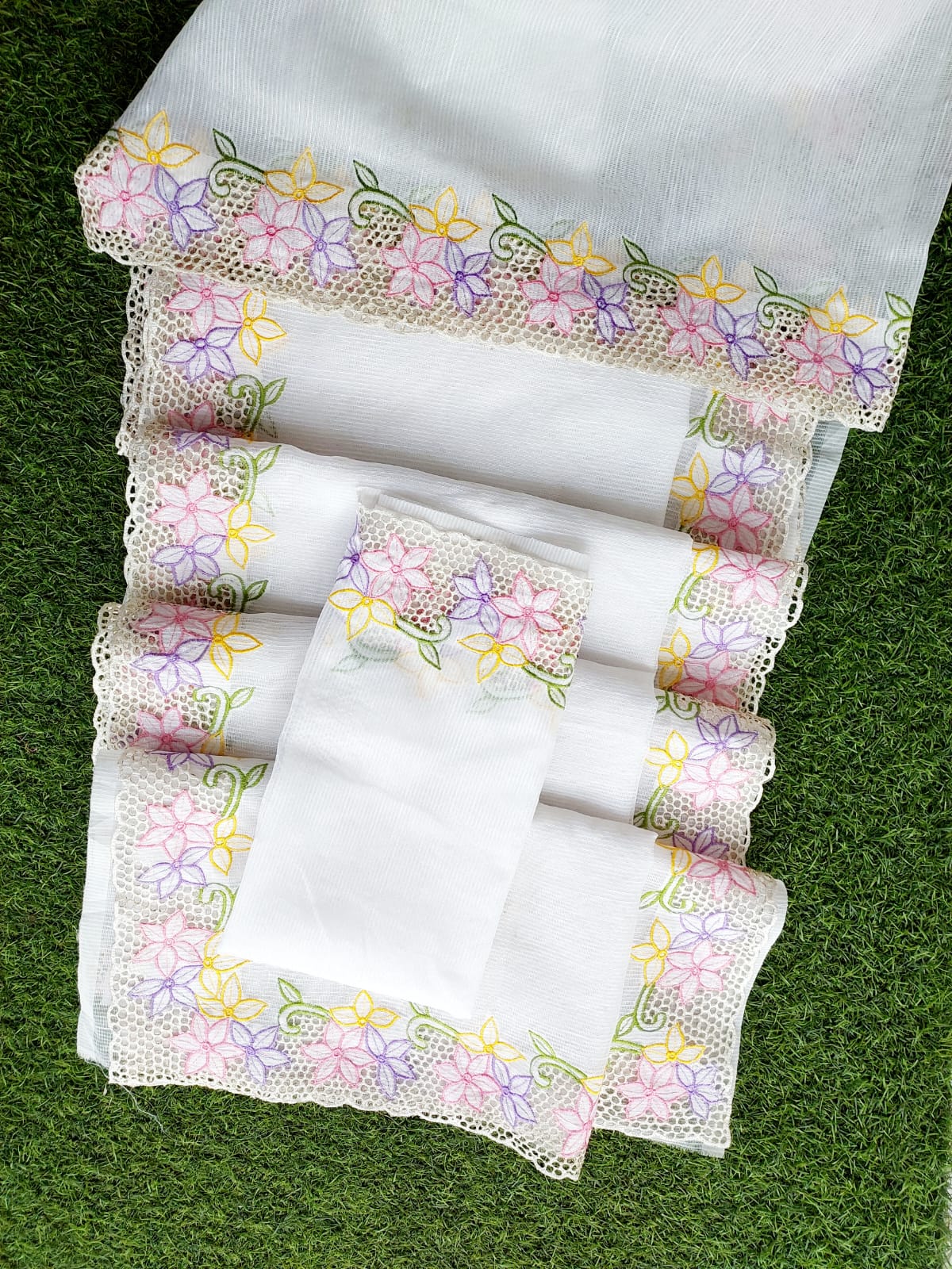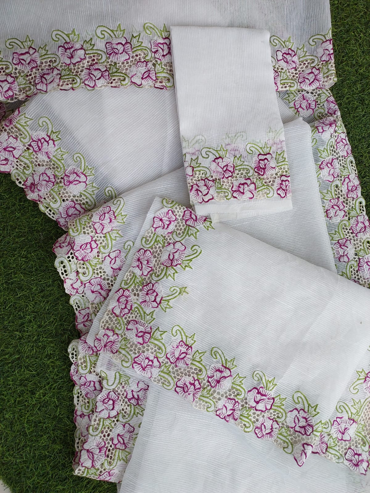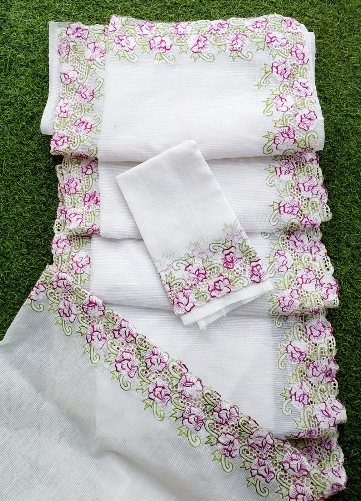 Noil kota white cutwork saree and blouse