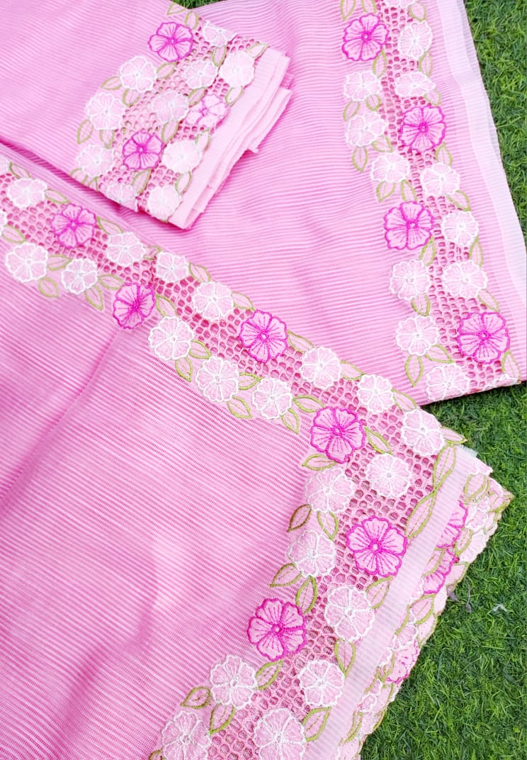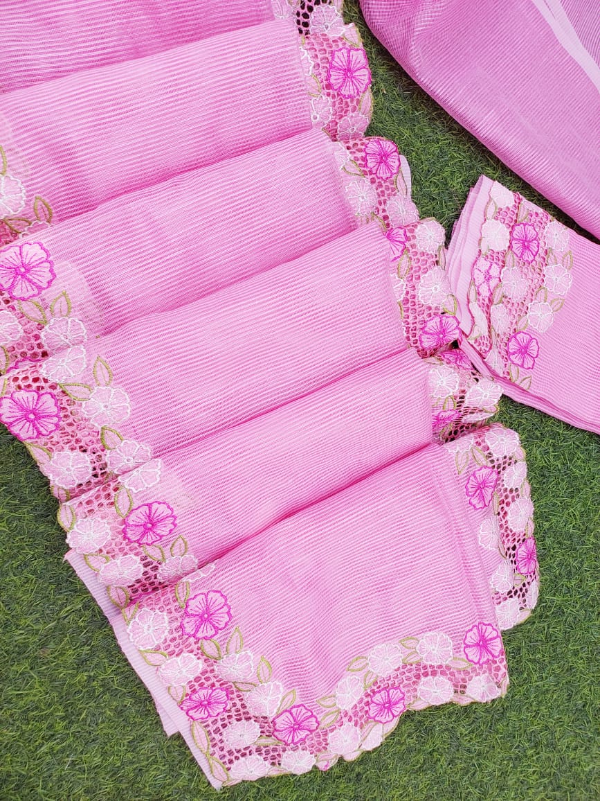 "Elegant Pink Silky Kota Cutwork Saree with Matching Blouse"