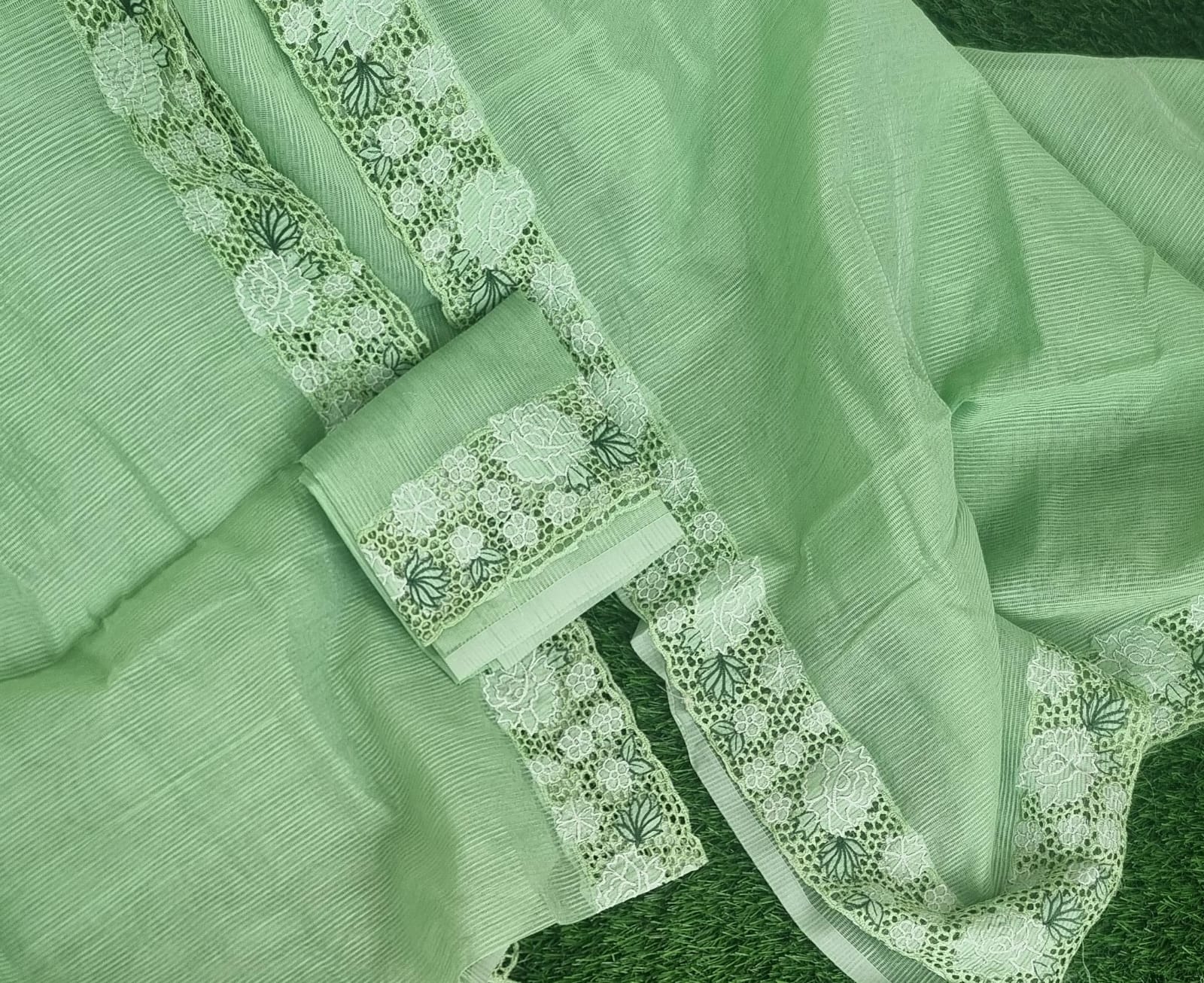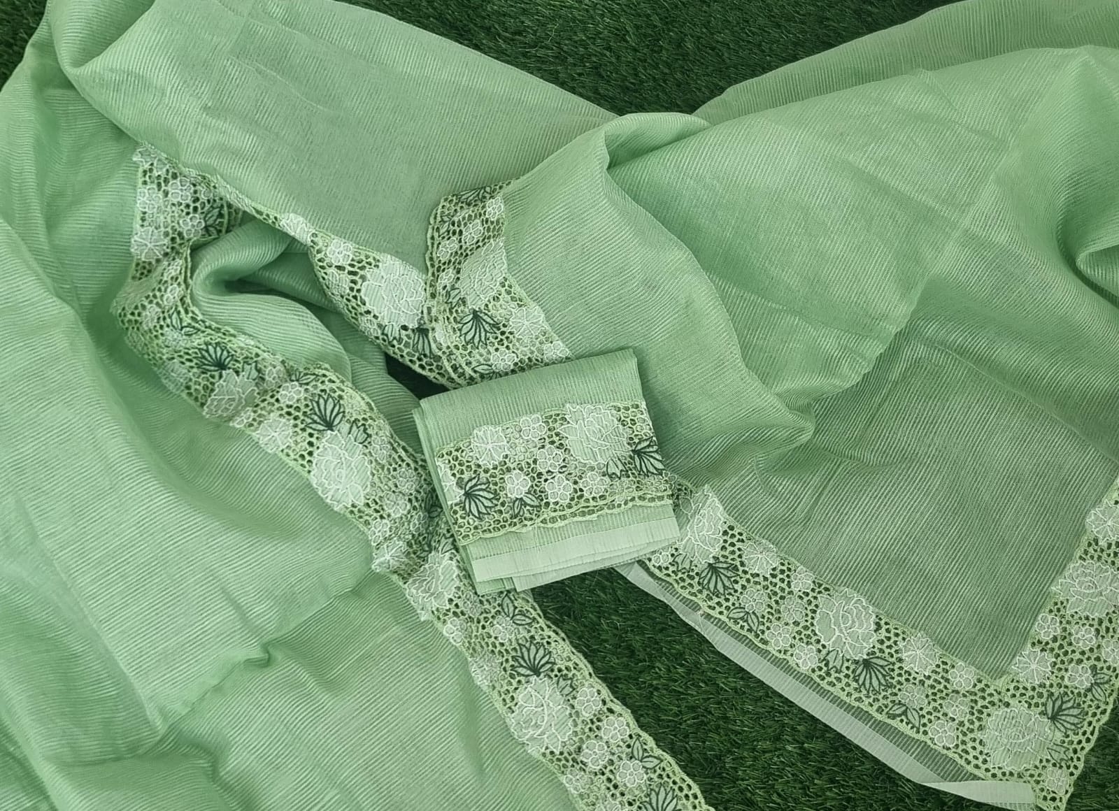 "Graceful Pista Green Noil Kota Cutwork Saree with Matching Blouse"