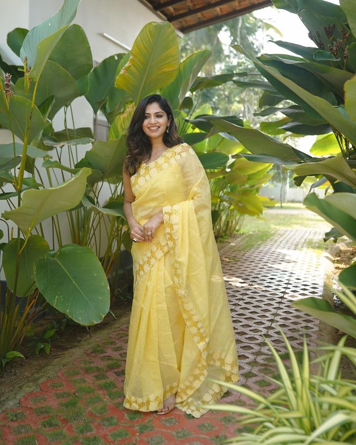 Radiant Yellow Noil Kota Cutwork Saree with Matching Blouse.