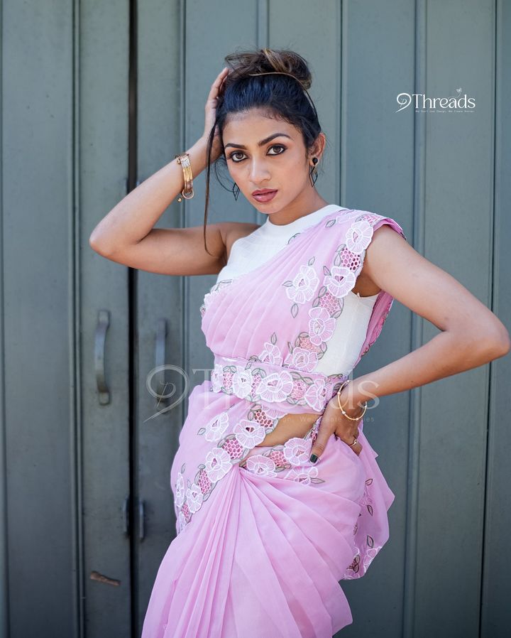 "This pink silky Kota saree from 9threads radiates elegance with its intricate cutwork and lustrous finish. The soft, lightweight fabric offers a graceful drape, ideal for any special occasion. Paired with a coordinating blouse, this...
