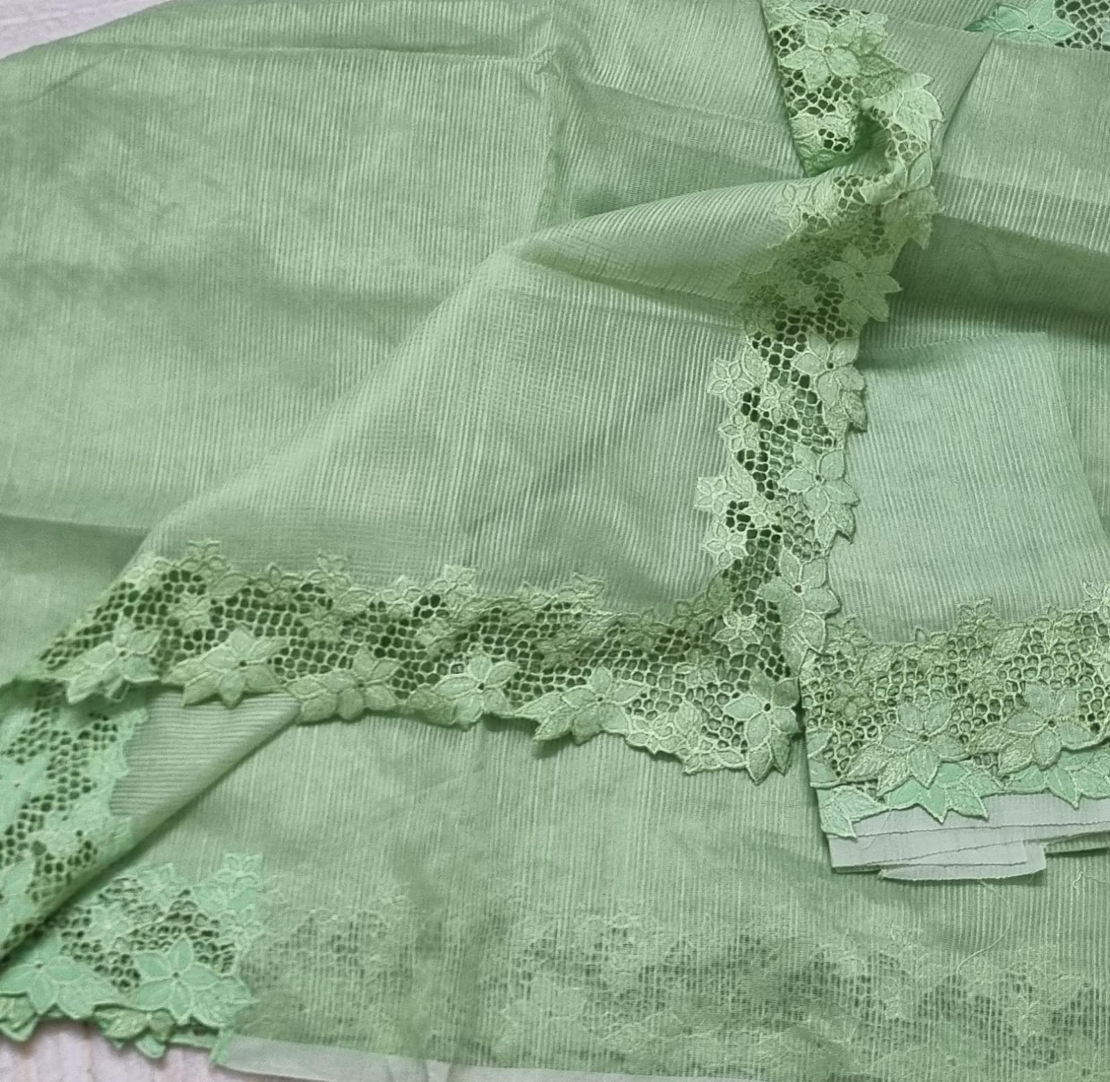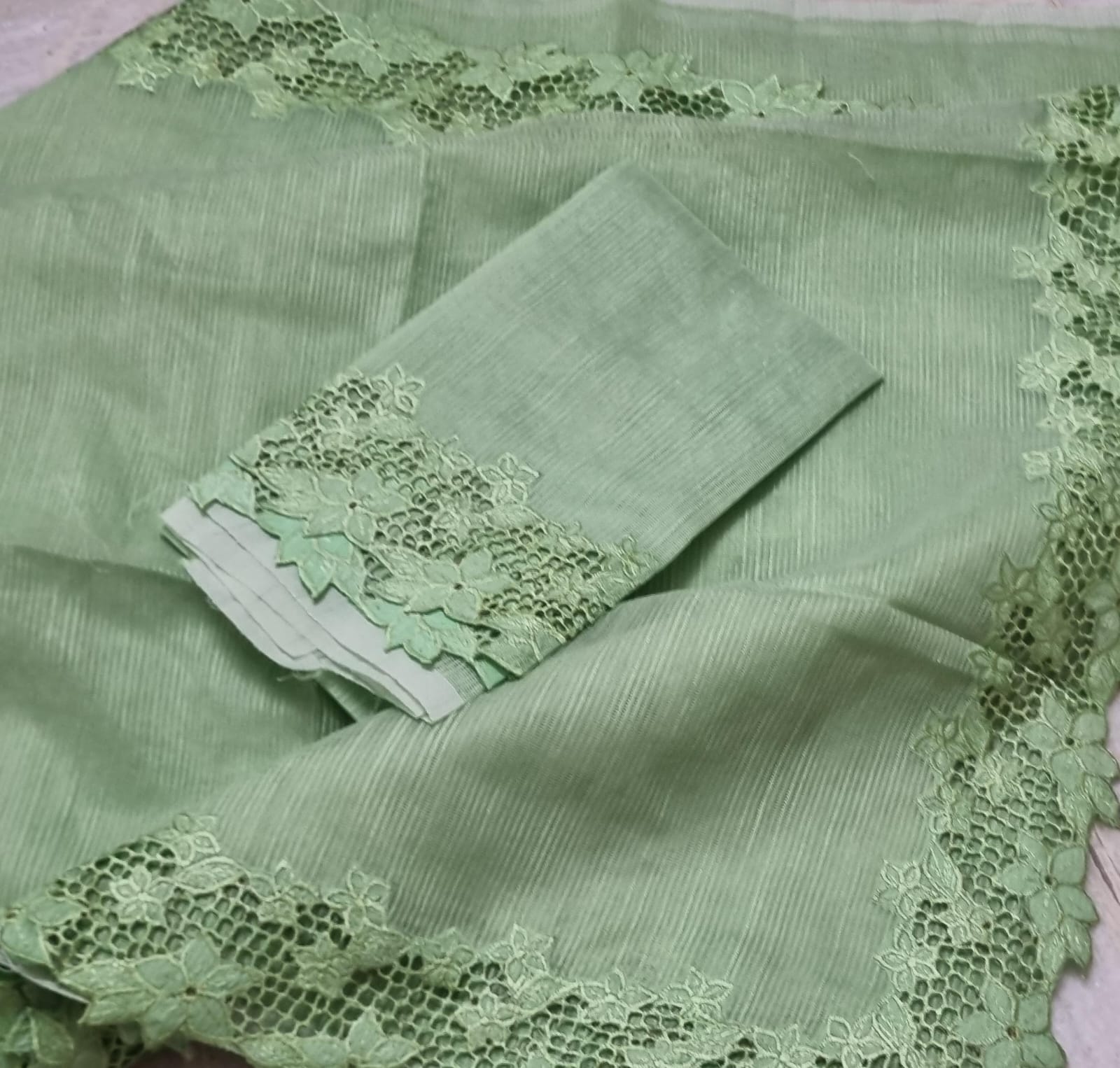 "Graceful Pista Green Noil Kota Cutwork Saree with Matching Blouse"