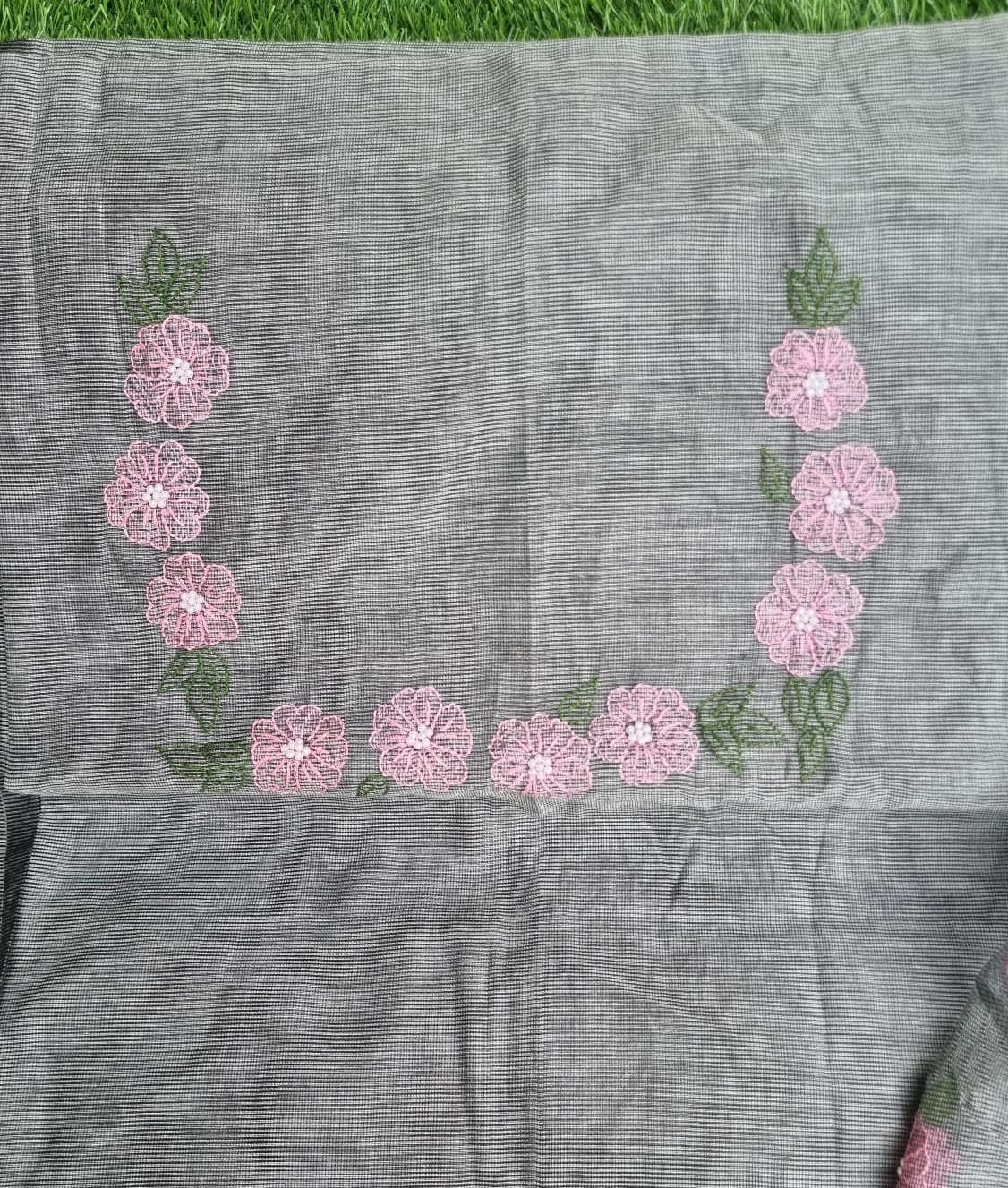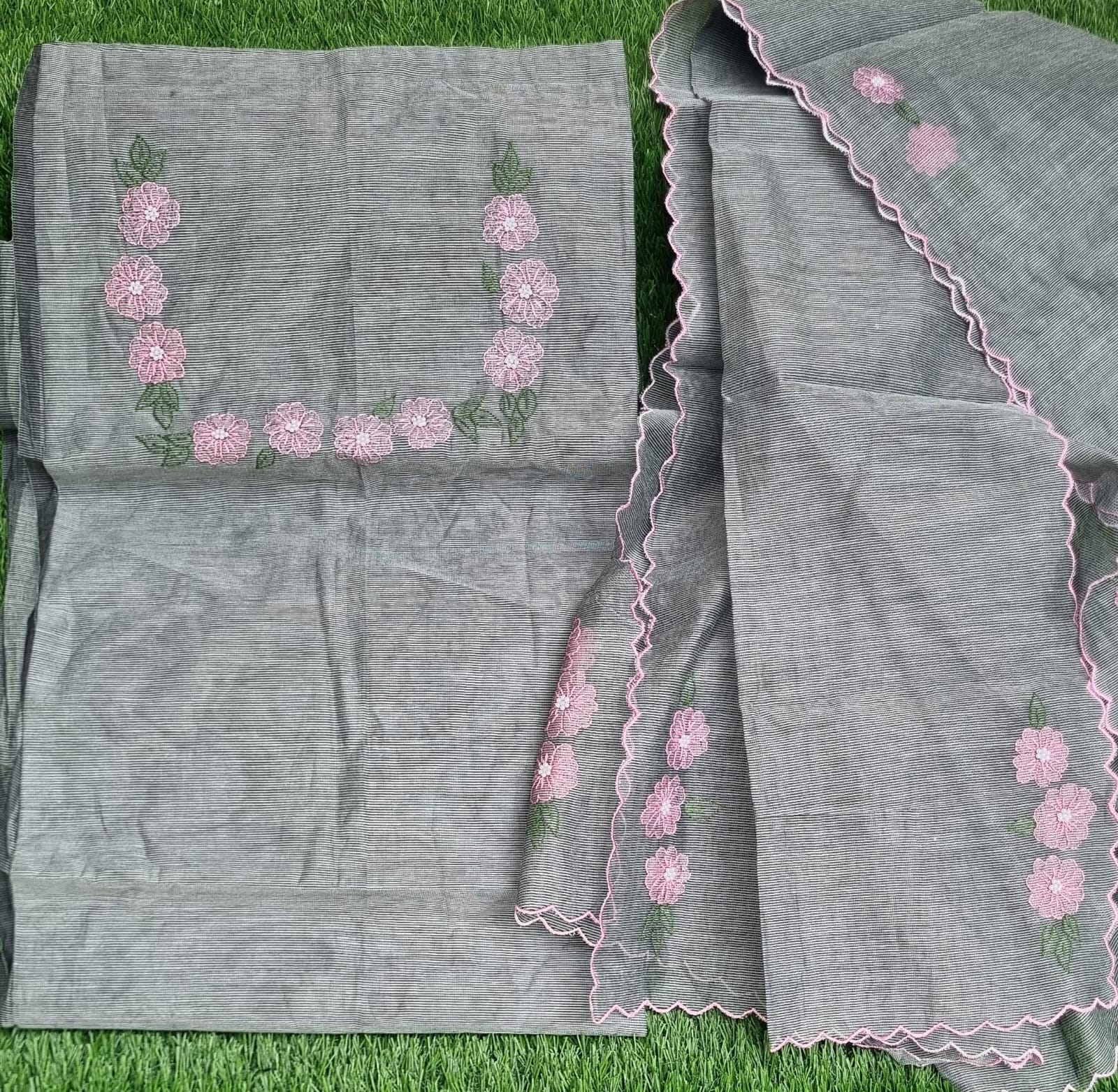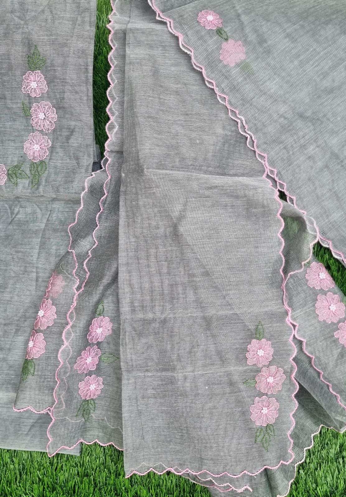 Elephant grey silky kota handwork and shadow work top and dupatta