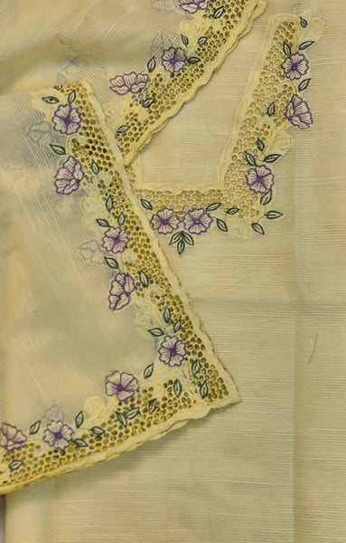 Noil kota lemon yellow color cutwork top and dupatta