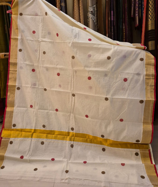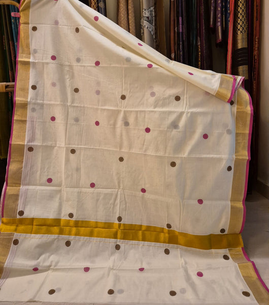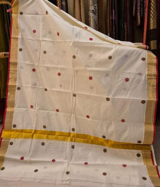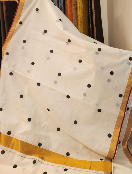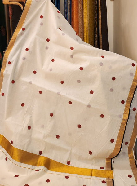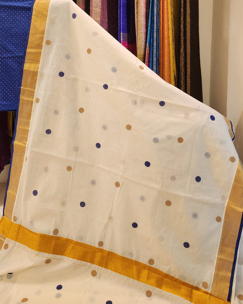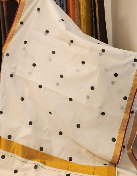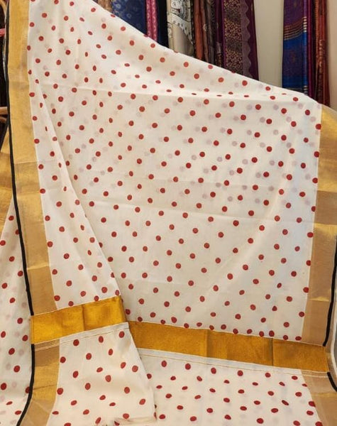 Powerloom Handblock Printed Kerala Cotton Saree with running blouse.Premium Quality Cotton