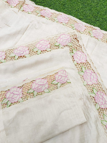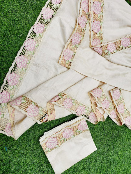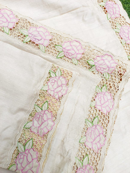 "Delicate Pink Linen Cutwork Saree with Matching Blouse"