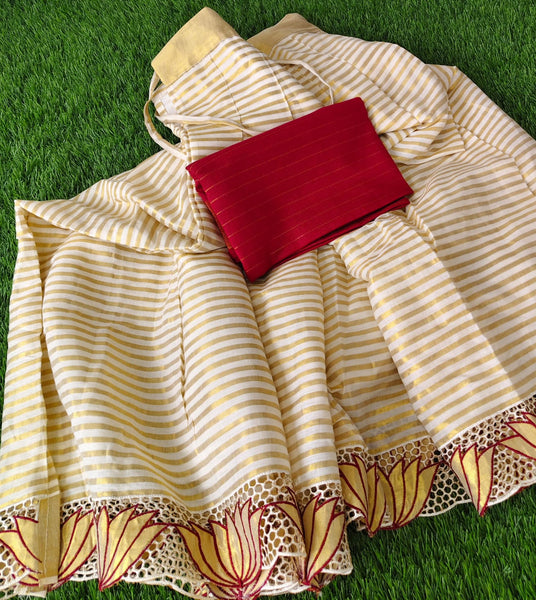 ✨ Onam Special Exclusive Launch ✨ Elegant semi-stitched skirt with full floral cutwork detailing at the bottom. Comes with a rich contrast striped blouse material. Skirt: 4 meters Blouse: 1.5 meters Perfect festive wear for a...