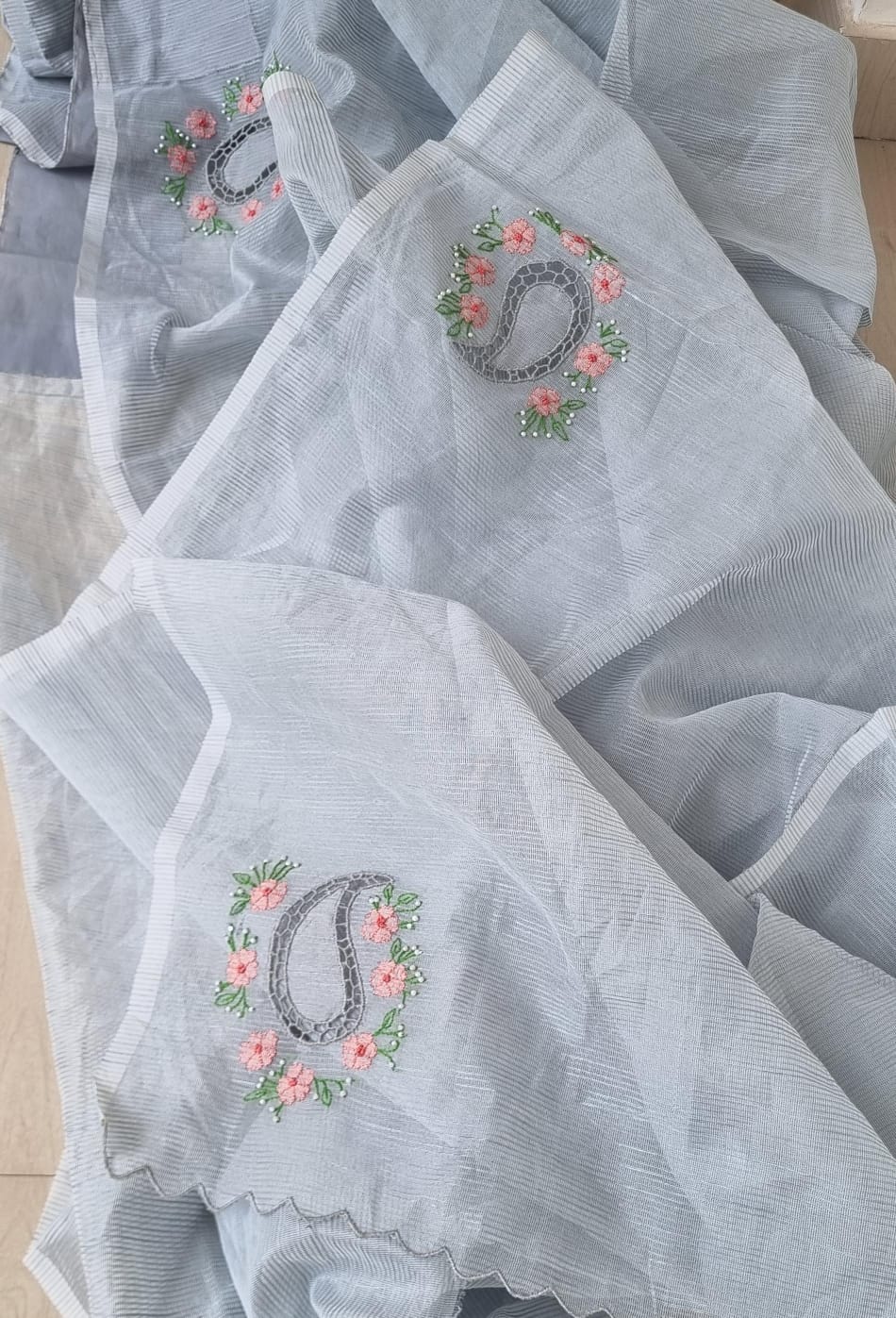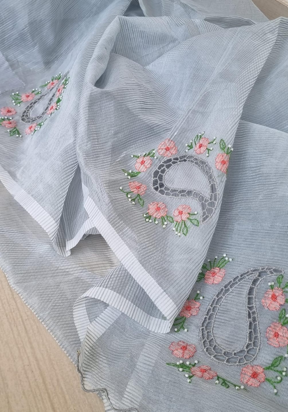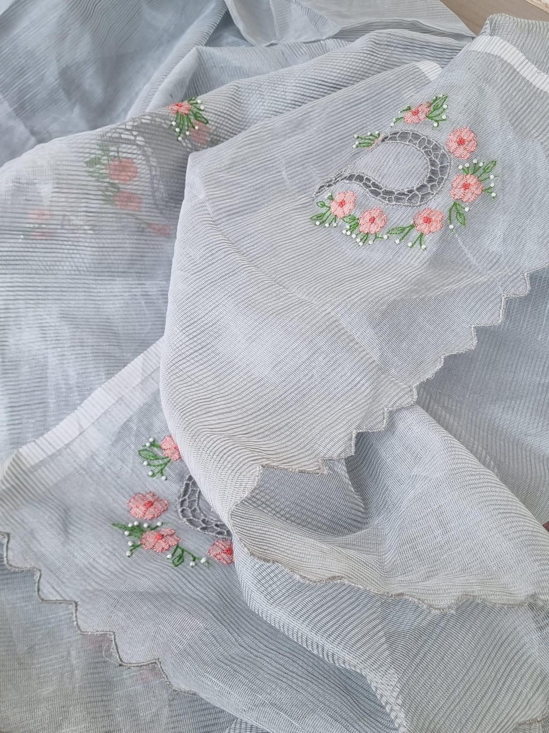 Banarasi silky Kota with cross-stitch embroidery saree and blouse