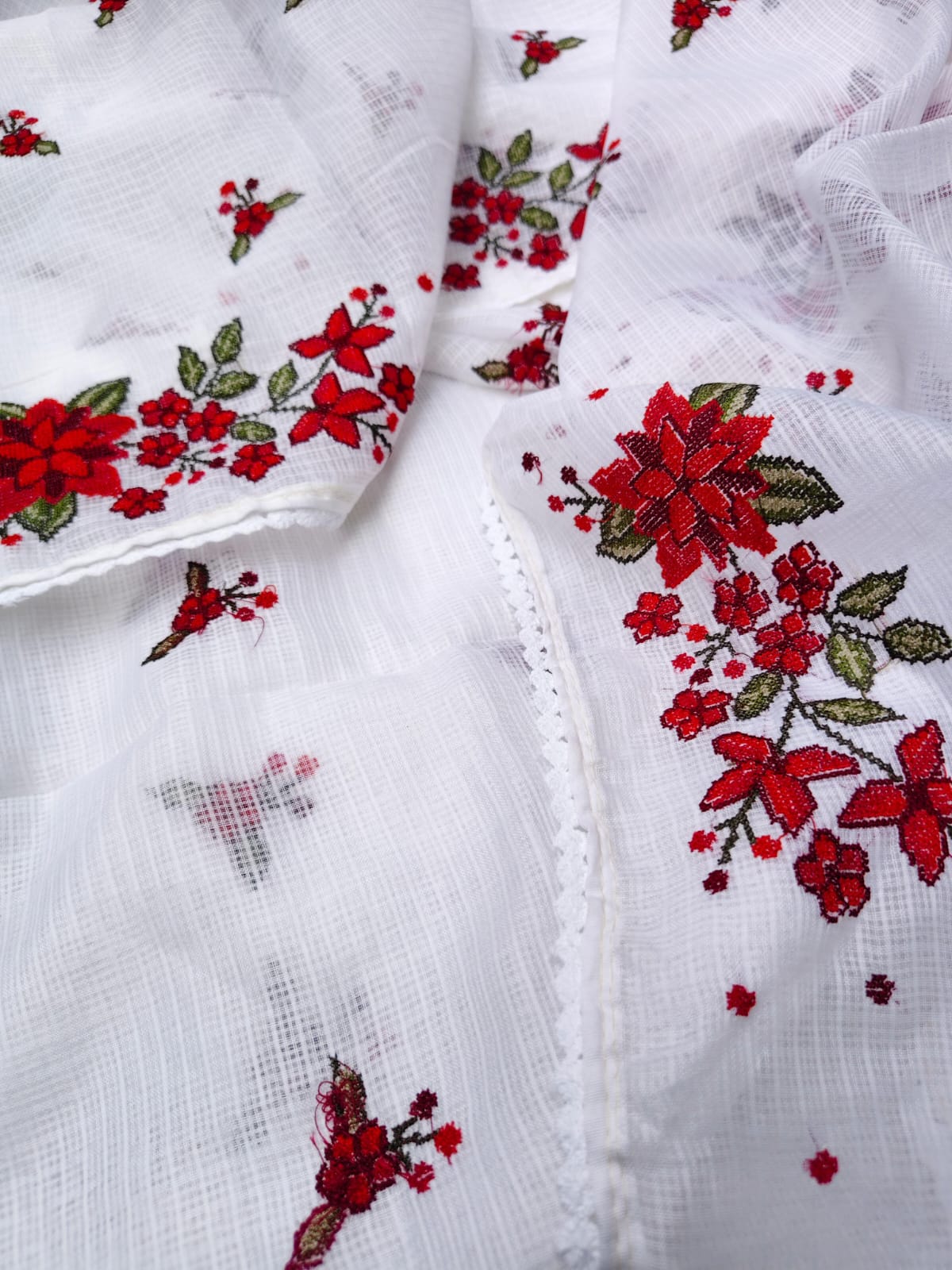 Beautiful linen saree and blouse with cutwork embroidery