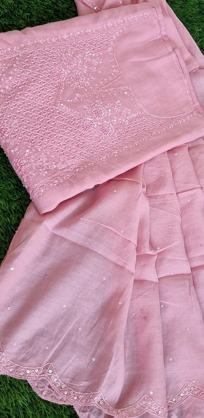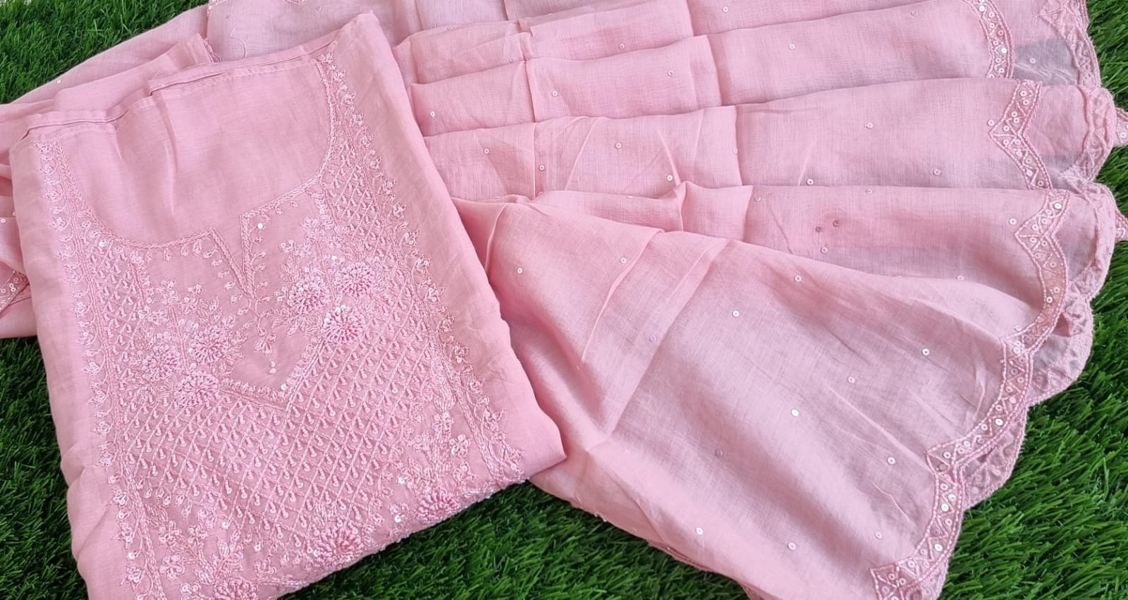 ✨Charming baby pink Chanderi top and dupatta set paired with a soft Shantoon bottom. The kurta features intricate thread embroidery highlighted with delicate sequins, adding a subtle shimmer. The lightweight dupatta and comfortable bottom make...
