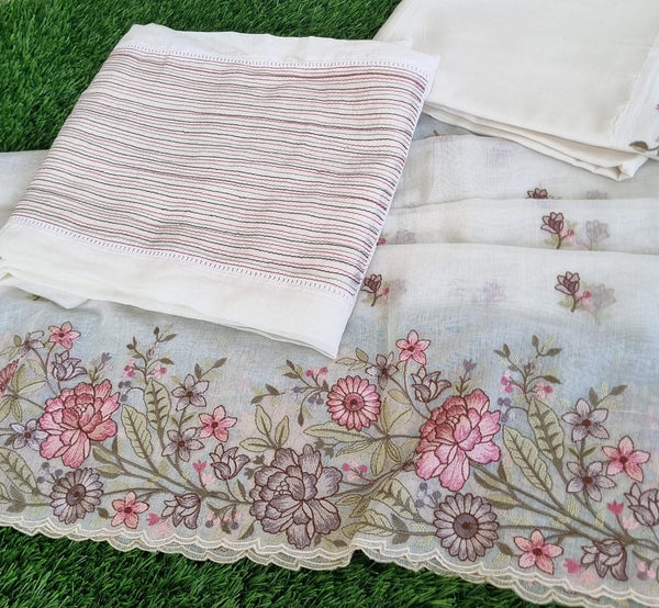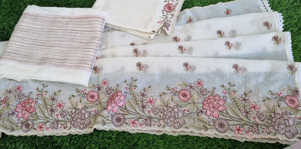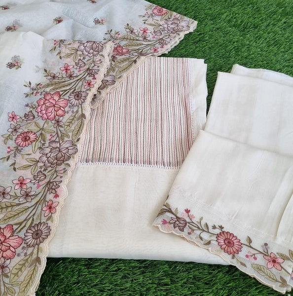πΈ Pure Chanderi Suit Set with Exquisite Embroidery πΈ β¨ Pure chanderi top in elegant stripes for a subtle, refined look.β¨ Beautifully embroidered pure chanderi dupatta with intricate floral designs in soft hues.β¨ Pure shantoon...