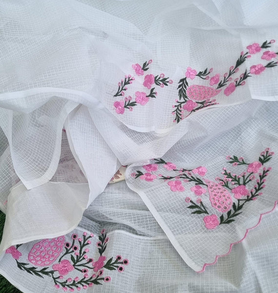 "Delicate Pink Linen Cutwork Saree with Matching Blouse"