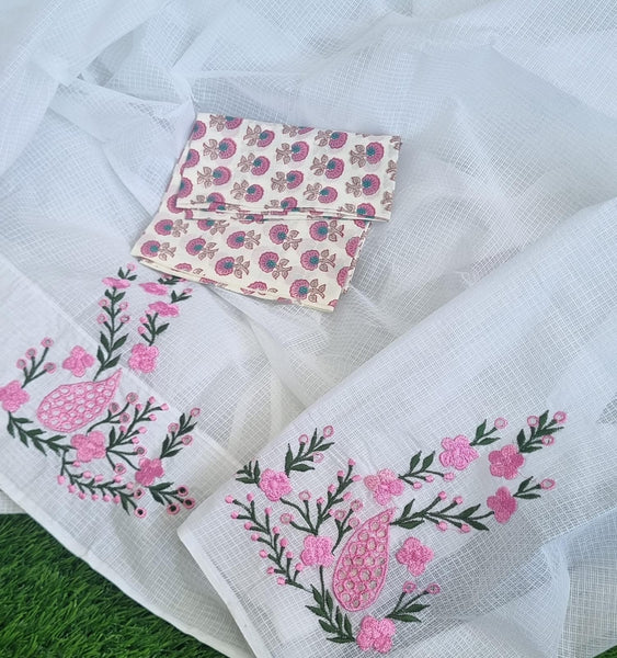 "Elegant Pink Silky Kota Cutwork Saree with Matching Blouse"
