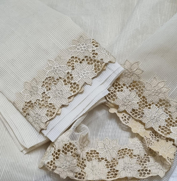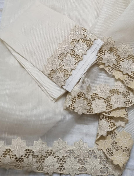 "Elegant Linen Cutwork Saree with Matching Blouse"