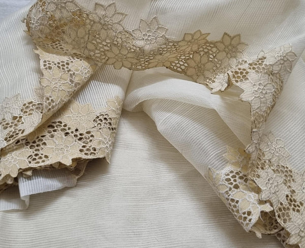 "Elegant and timeless, this cream-colored cutwork saree exudes sophistication with its intricate patterns crafted to perfection. Paired with a matching blouse, this ensemble is ideal for those who appreciate understated luxury and fine craftsmanship, making...