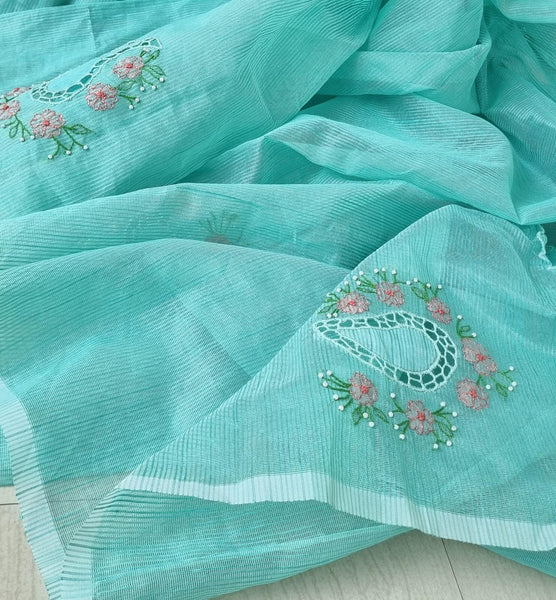 "Experience effortless elegance with our Blue Noil Kota Cutwork Saree