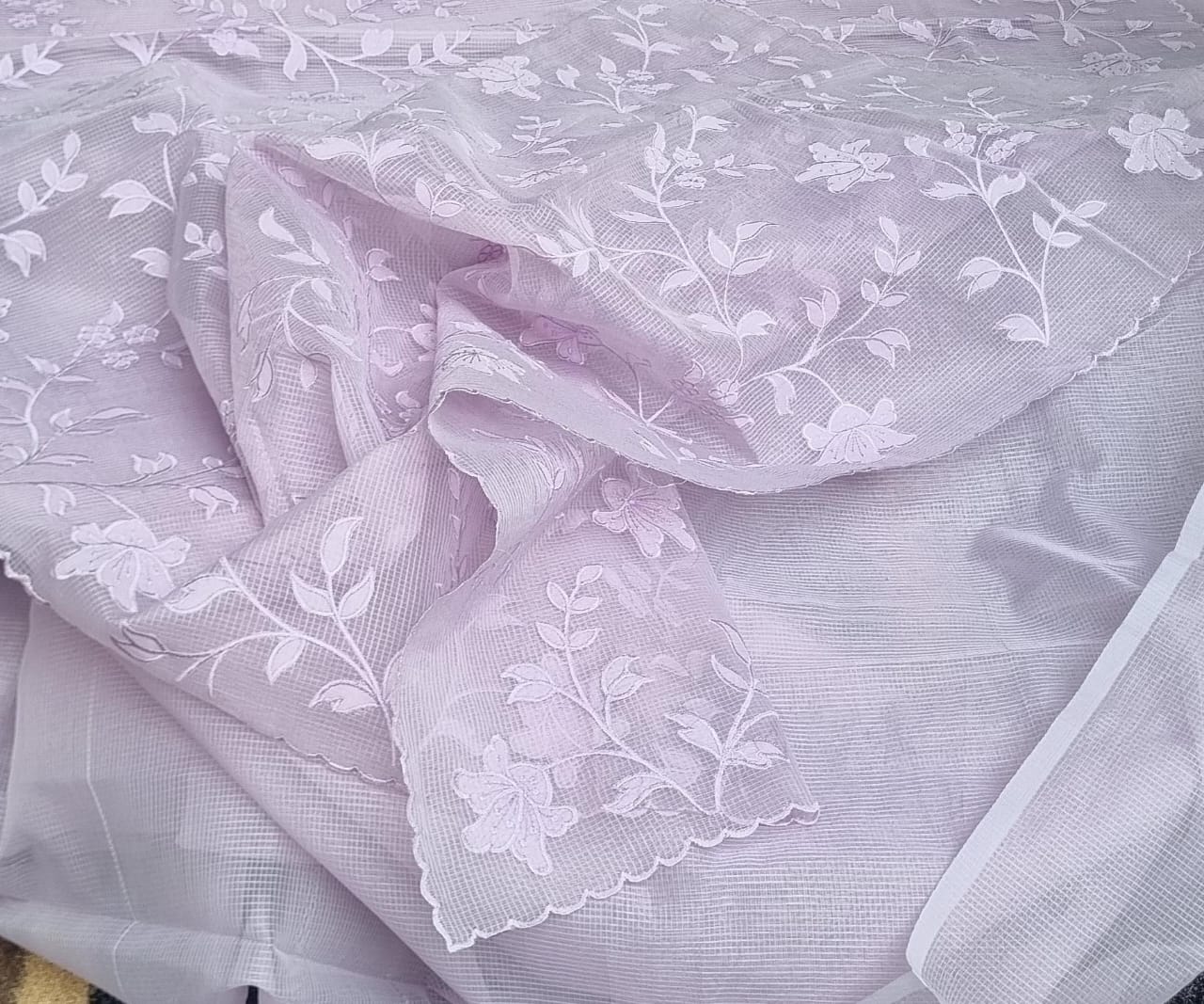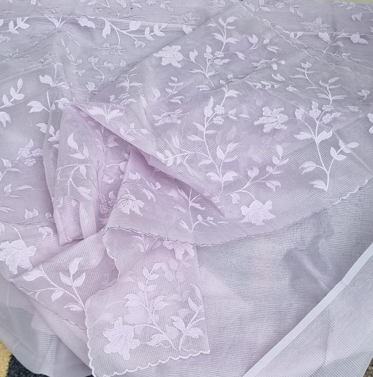 Heavy Applique Work on pallu , Scattered work on body , Kota Saree with Blouse. Lavender color