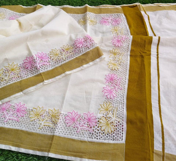 Kerala cotton cutwork saree and blouse