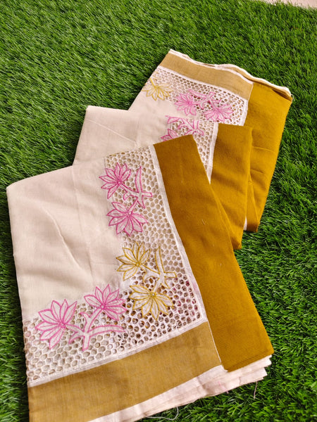 Onam Special ✨ Kerala cotton cutwork saree with matching blouse. Traditional and graceful festive wear.
