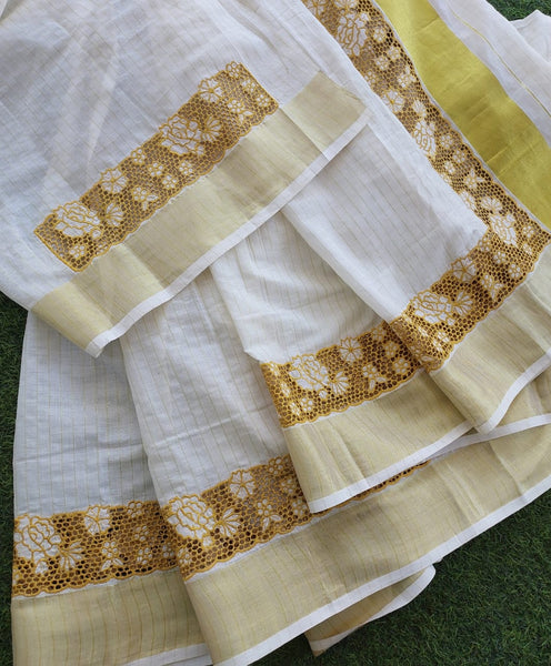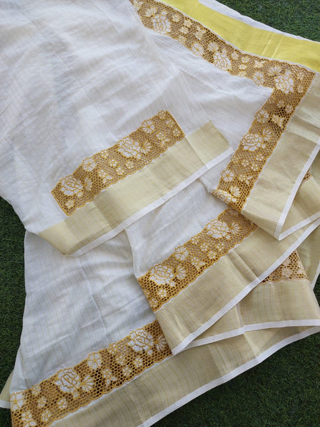 Kerala tissue cotton cutwork saree with blouse