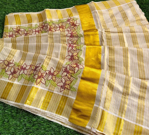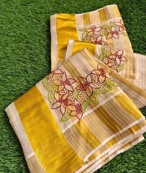 Cutwork tissue cotton saree with matching blouse. Perfect festive wear.
