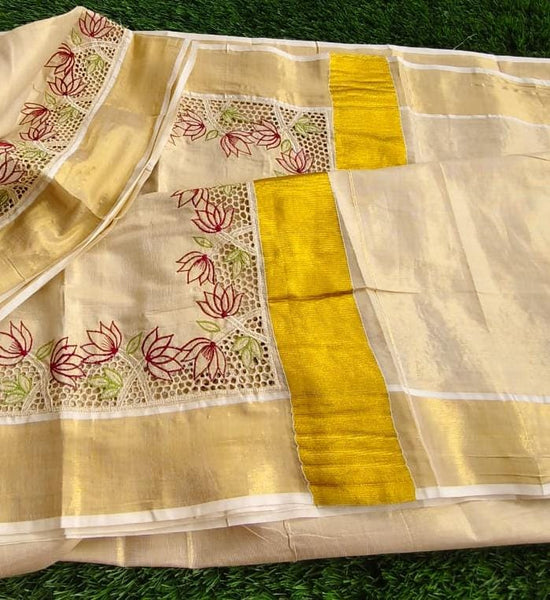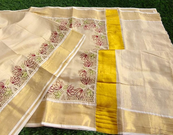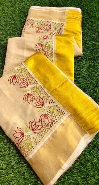 "Elegant Linen Cutwork Saree with Matching Blouse"