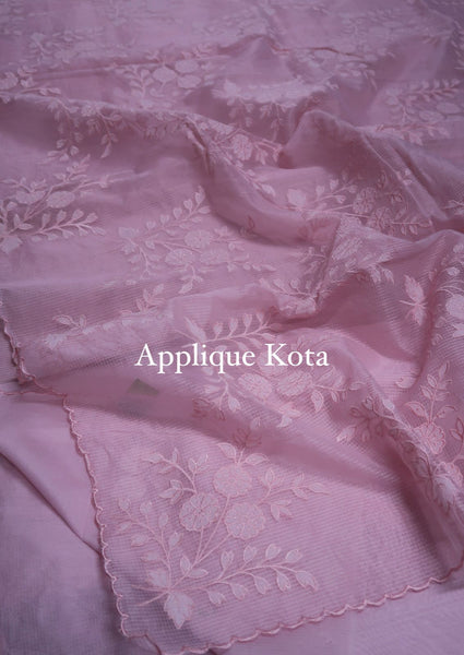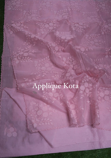 "Elegant Pink Silky Kota Cutwork Saree with Matching Blouse"