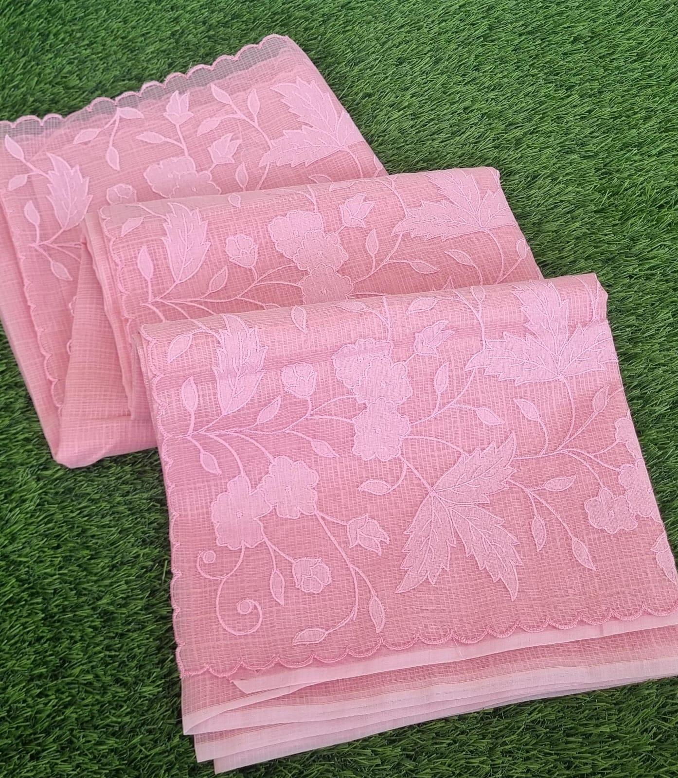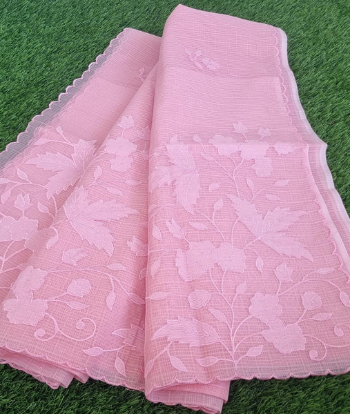Kota Applique Work saree and blouse- pink color
