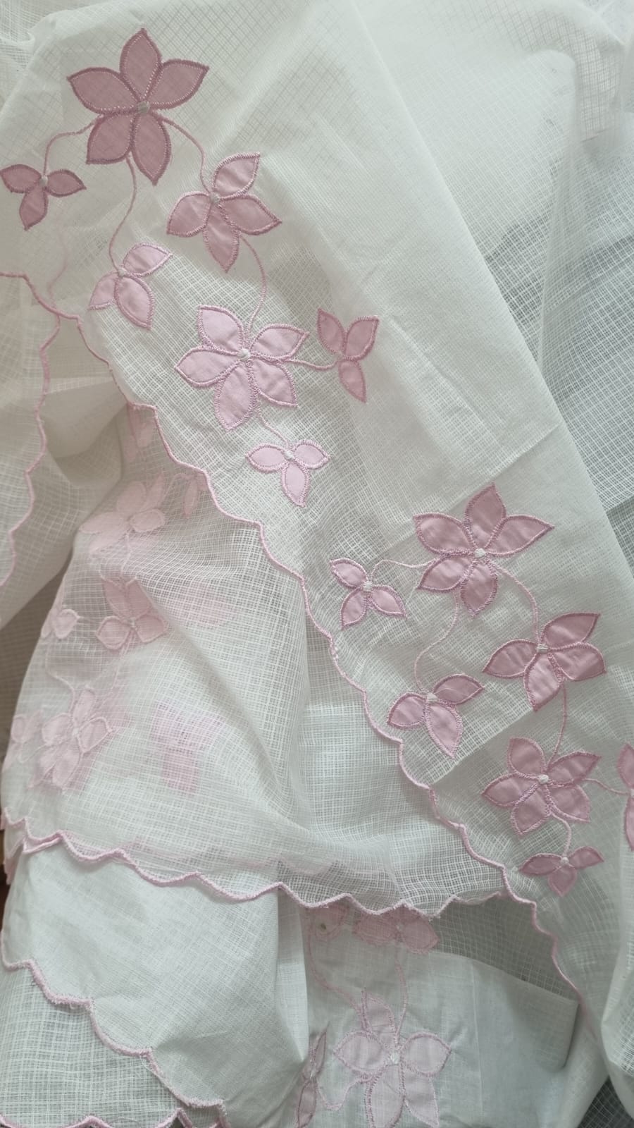 Heavy Applique Work on pallu , Scattered work on body , Kota Saree with Blouse. Peach color