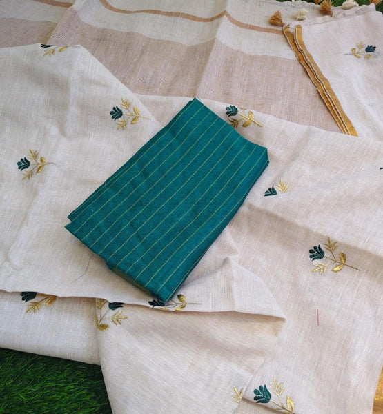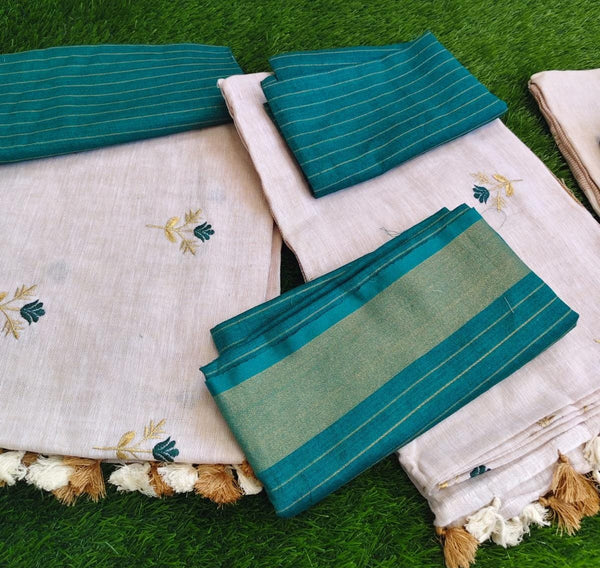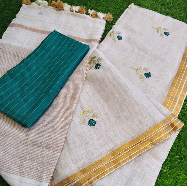 Linen embroidery saree with blouse