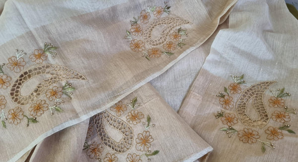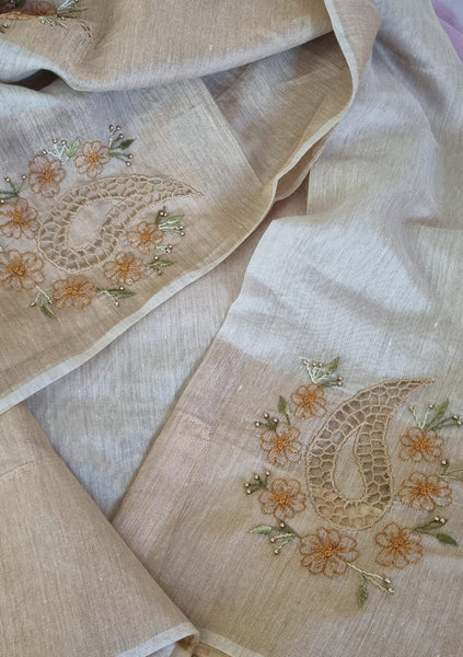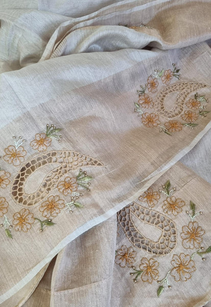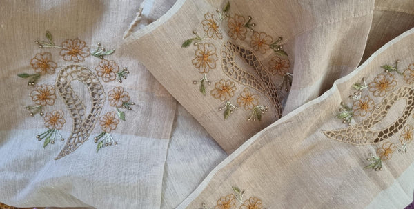 "Elegant Linen Cutwork Saree with Matching Blouse"