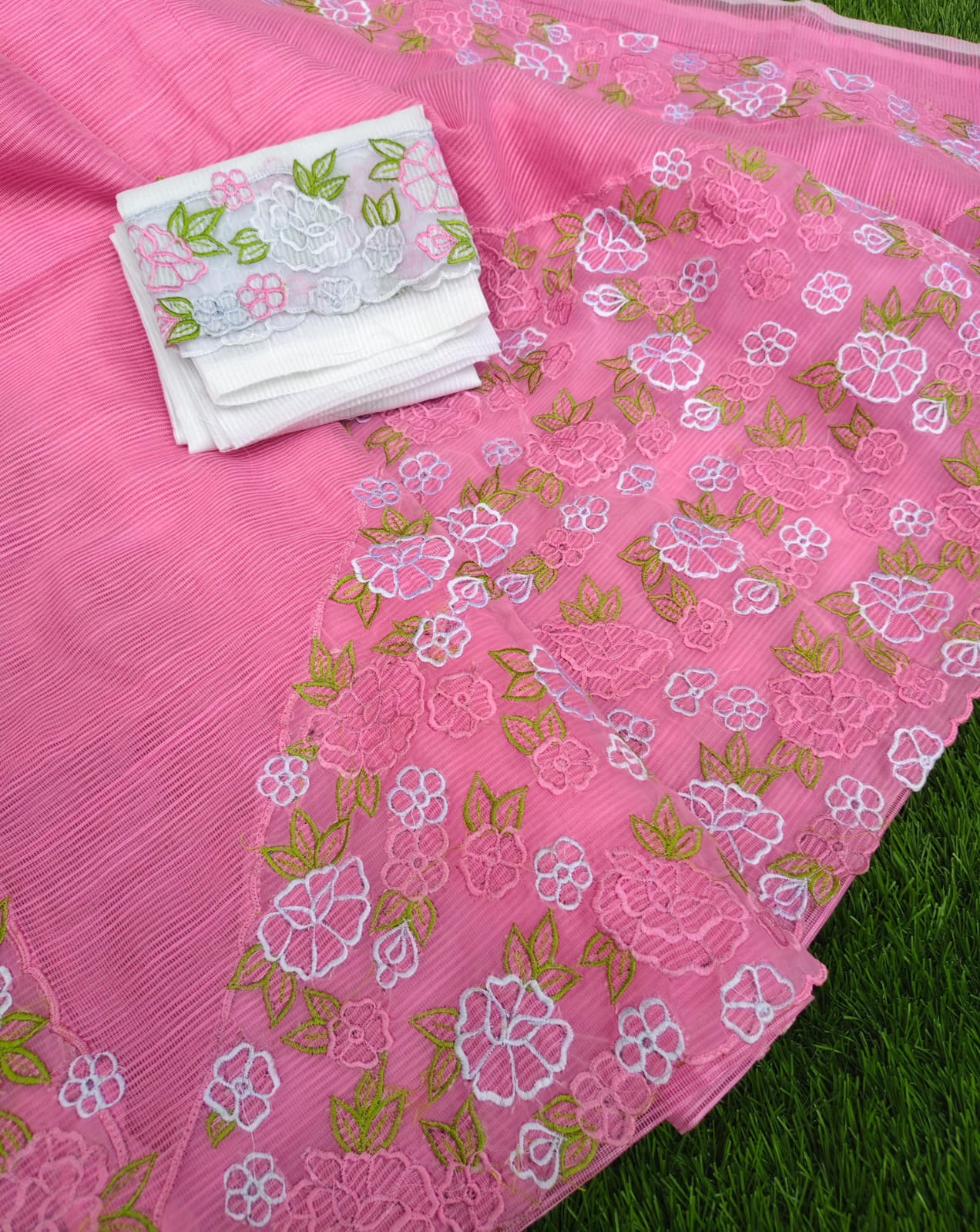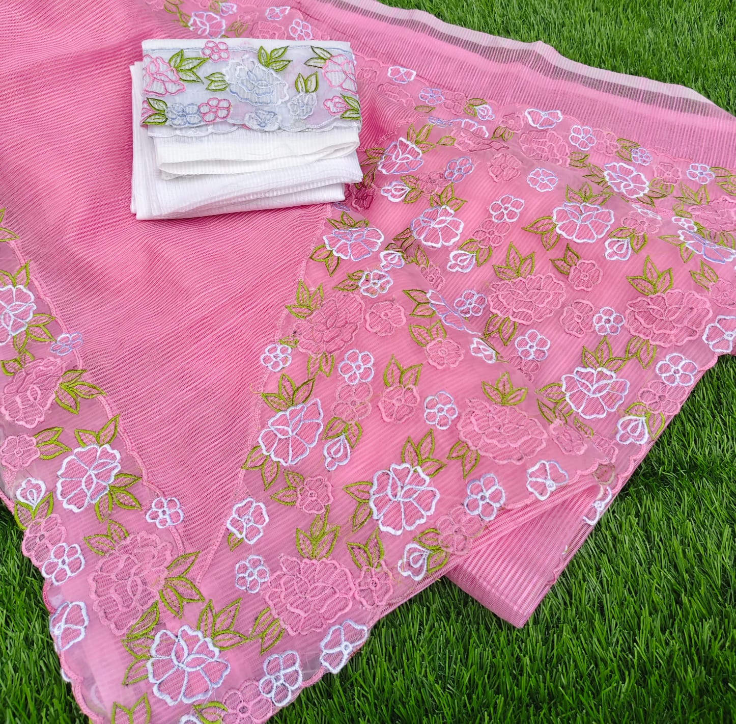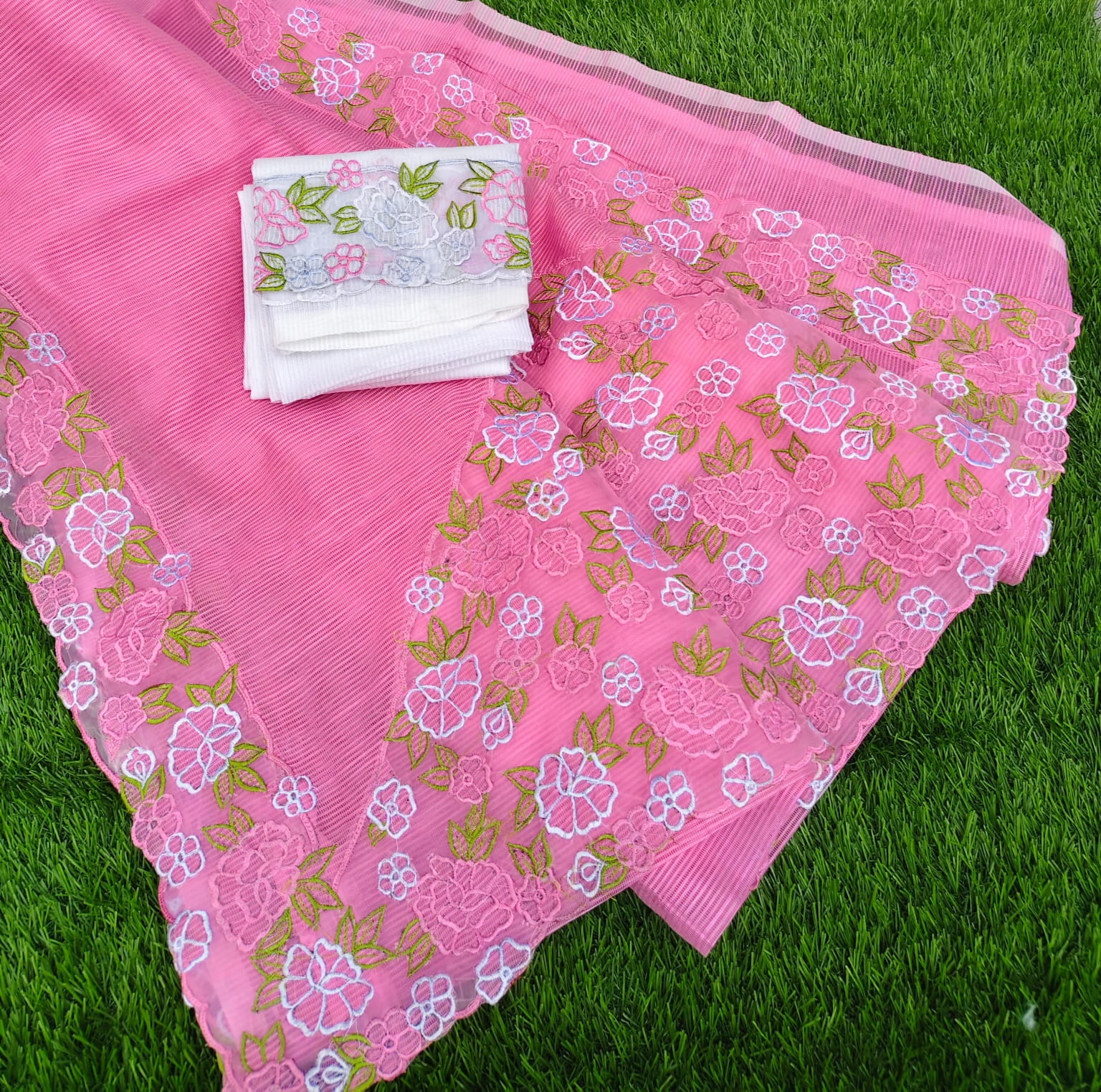 Heavy Applique Work on pallu , Scattered work on body , Kota Saree with Blouse.