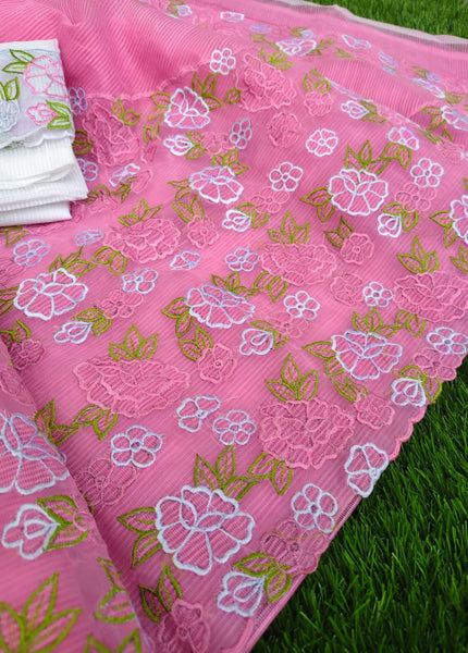 Heavy Applique Work on pallu , Scattered work on body , Kota Saree with Blouse. Peach color