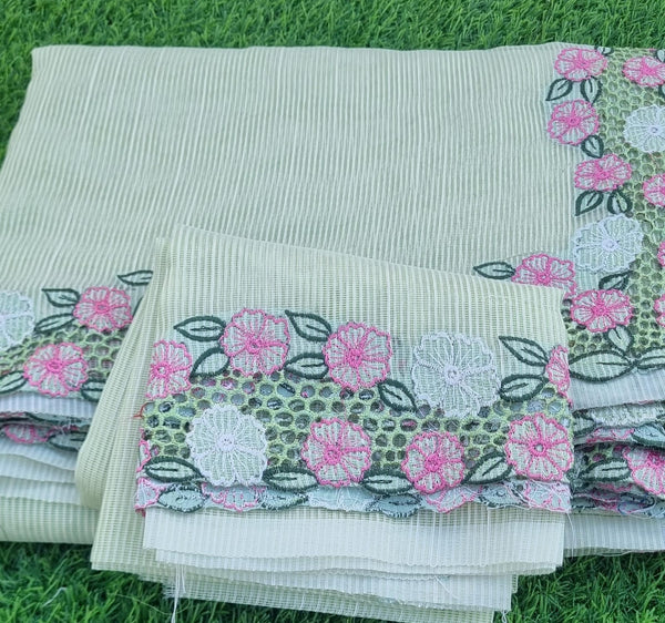 Beautiful linen saree and blouse with cutwork embroidery