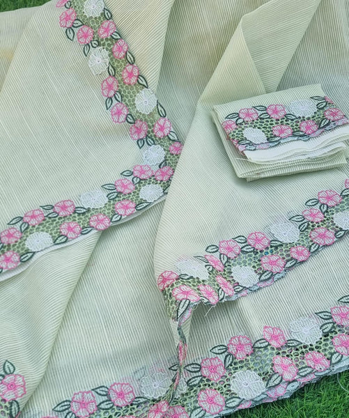 "Elegant Linen Cutwork Saree with Matching Blouse"