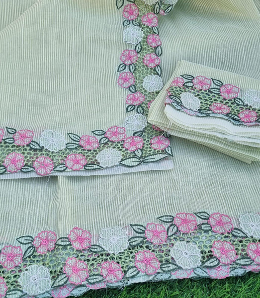 "Graceful Pista Green Noil Kota Cutwork Saree with Matching Blouse"
