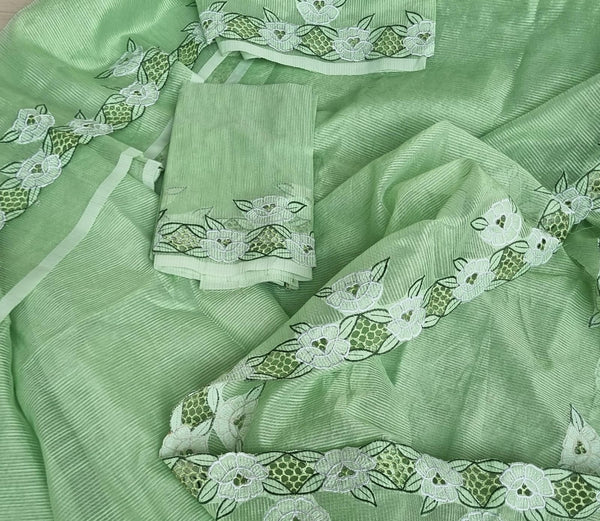 Firozy green noil Kota cutwork saree and blouse