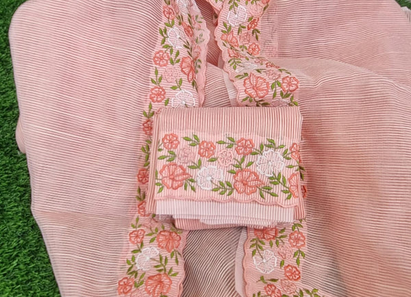 "Delicate Pink Linen Cutwork Saree with Matching Blouse"